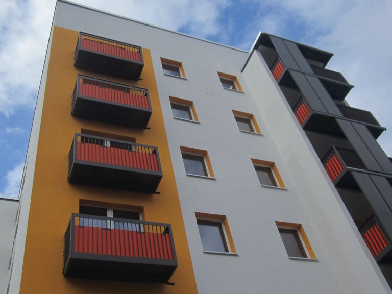 Giebelansicht eines sanierten Gebäudes / Bauherr: AWG Kontakt