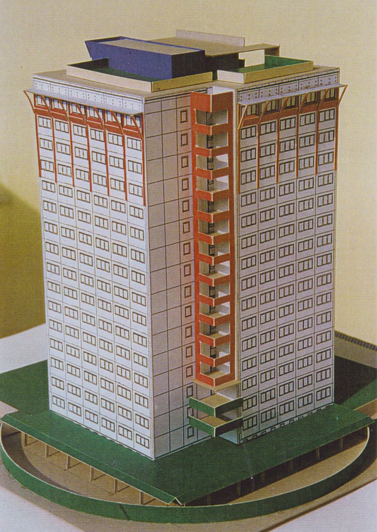 Sanierungsvorschlag für PH16 mit Tiefgarage und Dachaufbauten (Arbeitsmodell ca. 1998)