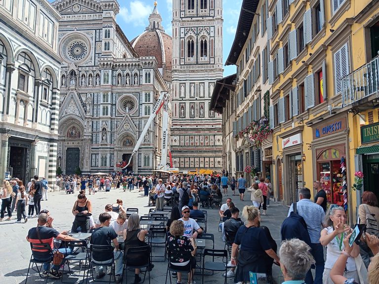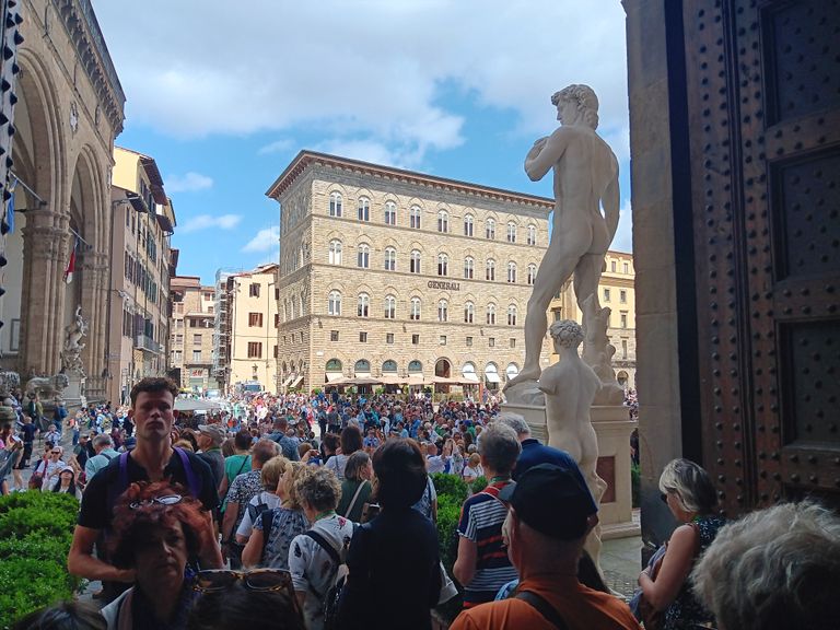 Höhepunkt unserer Reise durch die Toskana: FLORENZ, die unbestrittene Hauptstadt der Region. Der Weg führt uns durch die Altstadt hin zum Rathausplatz. Hier präsentiert uns Stadtführerin Walentina Michelangelos „David“ und berichtet, dass eine US-amerikanische Lehrerin entlassen wurde, weil sie ihren Schülern ein Bild der berühmten Statue gezeigt und erläutert hatte. Daraufhin hatten sich die Eltern der Kinder beschwert und den Unterricht „pornografisch“ genannt.