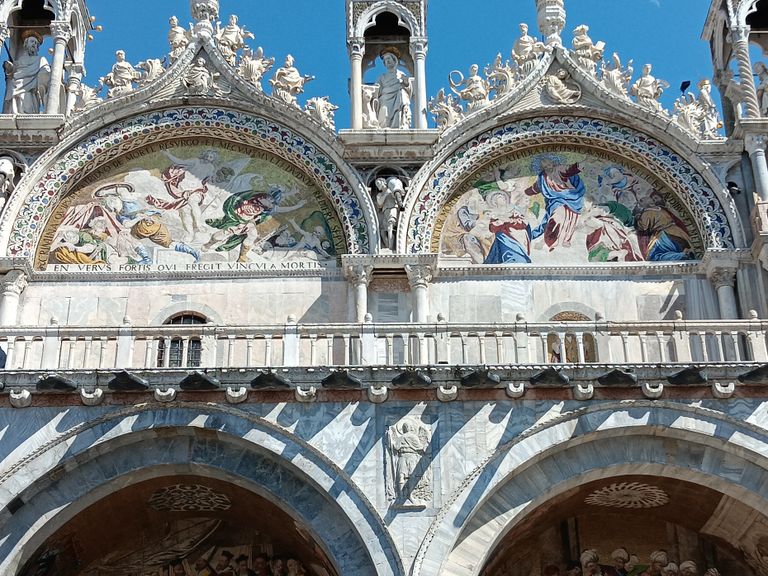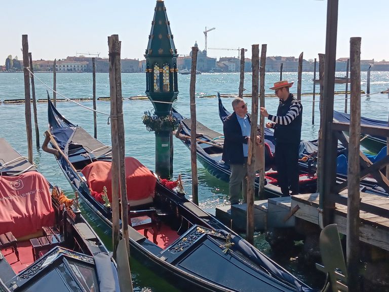 Enge Gassen, Menschenmassen, darunter auch Einheimische mit überwiegend finsteren Mienen. Denn es muss schon ein stolzes und duldsames Volk sein, das hier arbeiten, leben und überleben will und kann. Wir folgen der Stadtführerin, einer älteren, etwas altmodisch aber stilsicher gekleideten Venezianerin, die uns stolz voranschreitet, dabei ungerührt ihren Rundkurs absolviert und ihre Kommentare zur Stadt- und Architekturgeschichte der Lagunenstadt ins Audio-Mikro spricht. Danach sammeln wir uns zur Bootsfahrt durch/über die Lagune. Seit die Kreuzfahrtschiffe draußen bleiben müssen, ist das Wasser in Venedig klar und sauber. (2024)