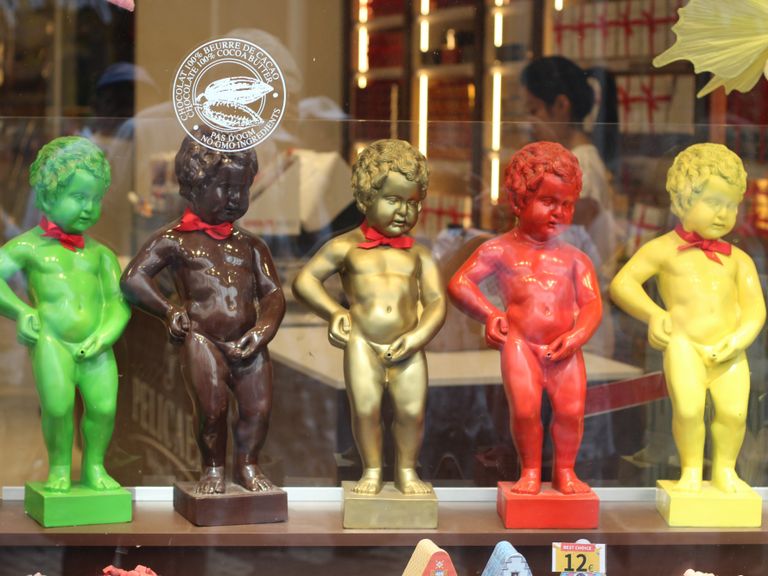 Mit solchem Wissen schlendern wir über die Straßen, besuchen die berühmte Schokoladen-Passage, bestaunen den üppig verzierten und reich vergoldeten Marktplatz und verweilen vor Brüssels „eigentlichem“ Wahrzeichen, dem „Männeken Pis“.